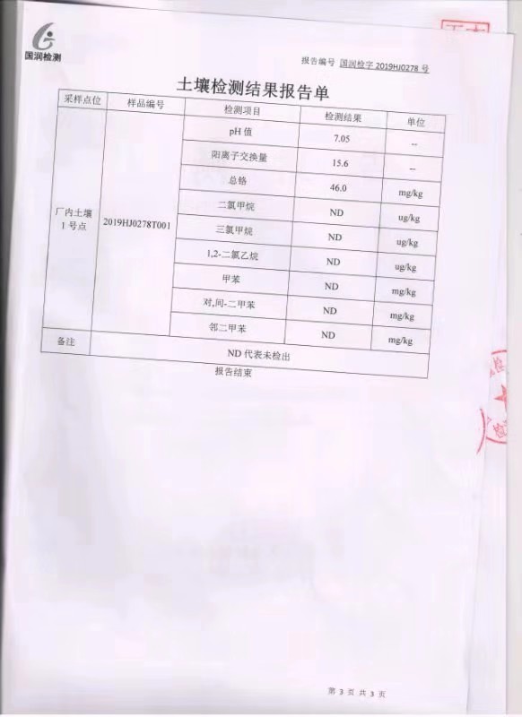 山東華陽農(nóng)藥化工集團(tuán)有限公司土壤環(huán)境檢測報(bào)告